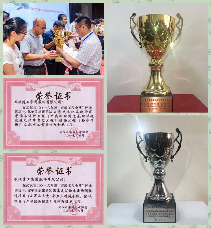 7月28日, 2016年度武漢市市政工程金獎(jiǎng)表彰大會(huì)在武漢會(huì)議中心圓滿舉行,由路橋分公司申報(bào)的兩項(xiàng)工程喜摘武漢市“市政金杯金獎(jiǎng)”一金一銀。