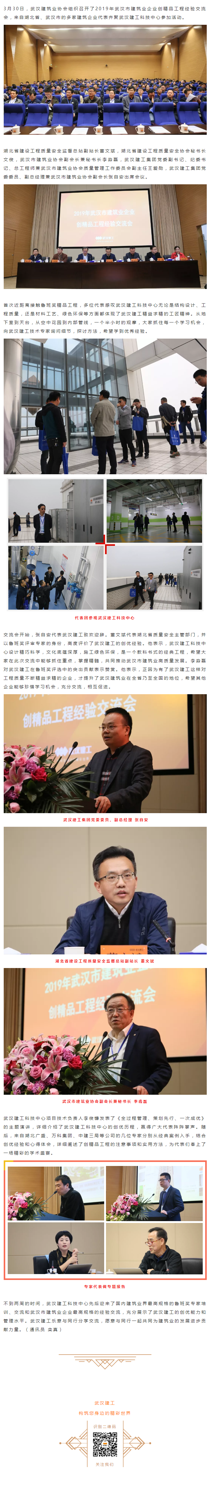 2019年武漢市建筑業(yè)企業(yè)創(chuàng)精品工程經(jīng)驗交流會在武漢建工科技中心召開